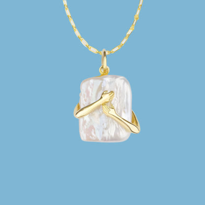 Le pendentif carré du collier de perles Sa forme ajoute à son caractère unique, la distinguant des perles baroques ovales ou rondes classiques. L'alliance du symbolisme romantique, de la forme carrée moderne et de la beauté irrégulière des perles baroques crée une esthétique élégante et intemporelle.
